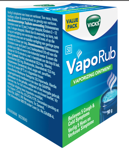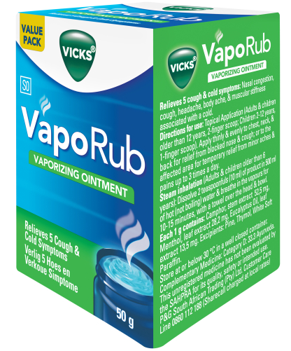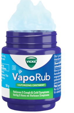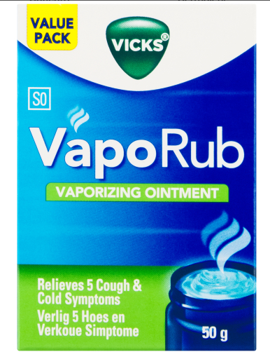 Vicks VapoRub est utilisé comme un traitement d’appoint décongestionnant pour les affections respiratoires courantes comme le rhume, la toux et les bronchites simples.